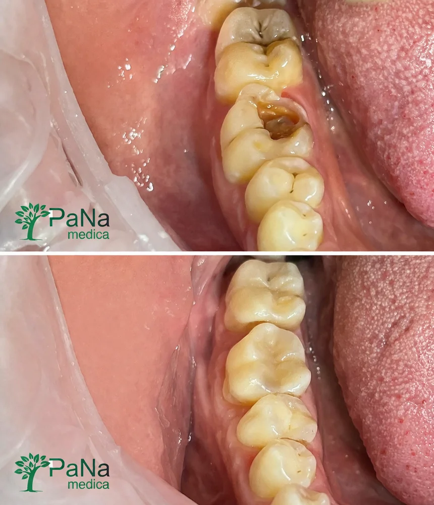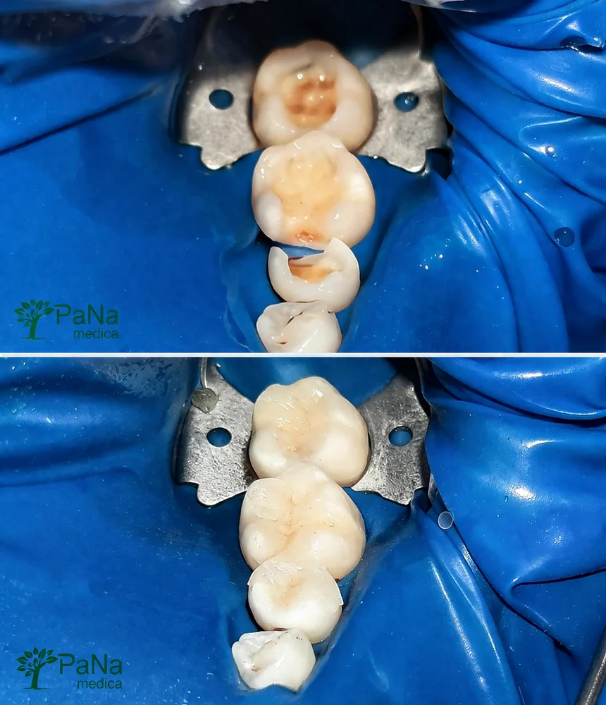 W pierwszym przypadku problem wraca, w drugim — ząb jest osłabiony bardziej, niż powinien. Dzięki powiększeniu lekarz dokładnie widzi, gdzie trzeba skończyć i pracuje precyzyjnie — bez zgadywania i bez „na zapas”